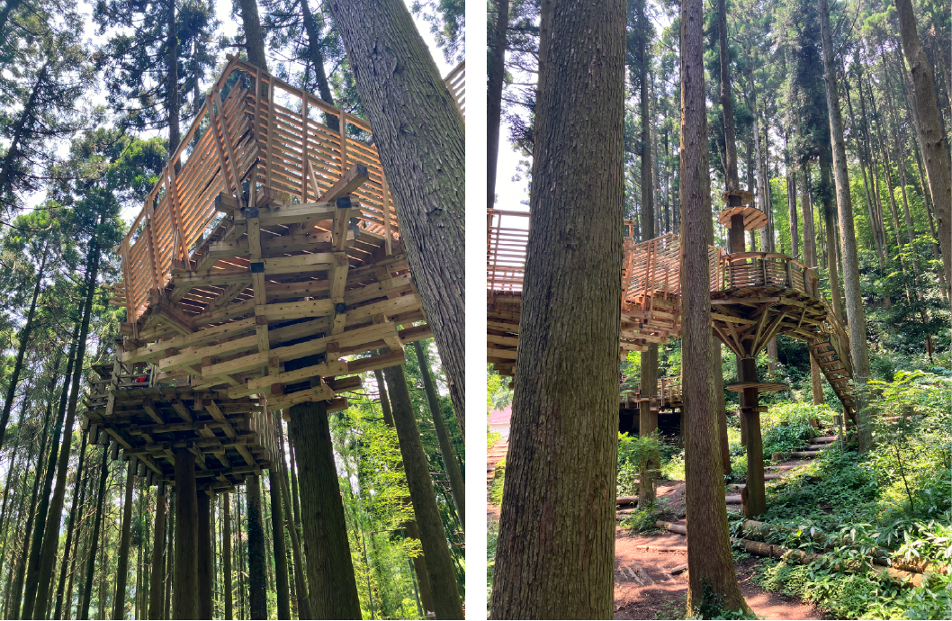 奥に向かうと木々の中にたくさんのツリーハウスが見えてきます。