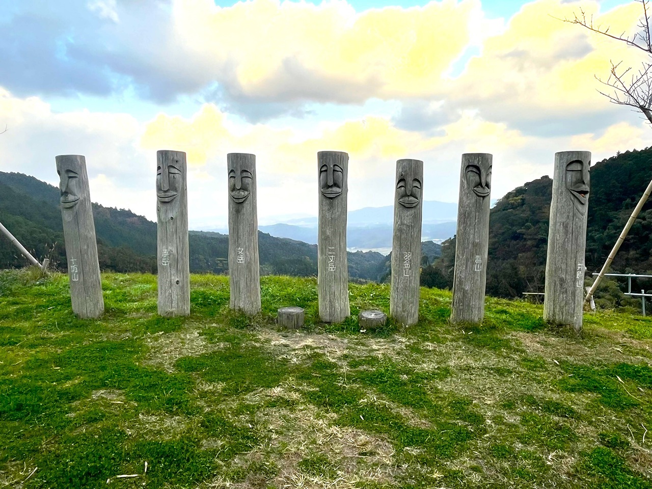 こちらは「糸島七座」と呼ばれているオブジェで、背振山脈を縦断する7つの山の名前(井原山・雷山・羽金山・二丈岳・女岳・浮岳・十坊山)がそれぞれ彫ってあります。