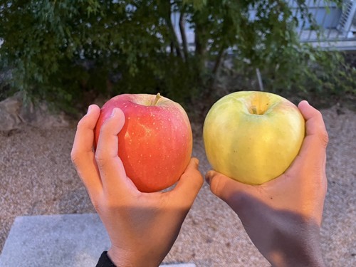 この日は、真っ赤に色づいた「ふじ」と爽やかな青りんご「名月」を食べ比べ。
