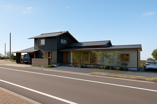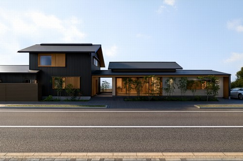 外壁には伝統技法の焼杉、構造にはもちろん安成の特徴でもある輪掛け乾燥により加工した上津江杉を使用し、