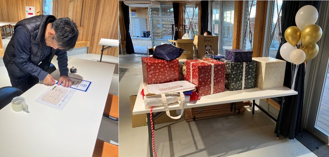 会場をクリスマス仕様に装飾し、飾りつけをするスタッフも子供のように