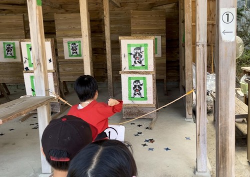 手裏剣や輪投げ、射的など子供が好きそうな遊び場がたくさんあり、