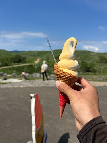 秋吉台を眺められる展望台にはこれからの時期にぴったりな冷たい夏みかんソフトクリームが売られていたり、