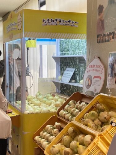 屋内には「たまねぎキャッチャー」があり、ゲット出来なくても必ず持ち帰れるように