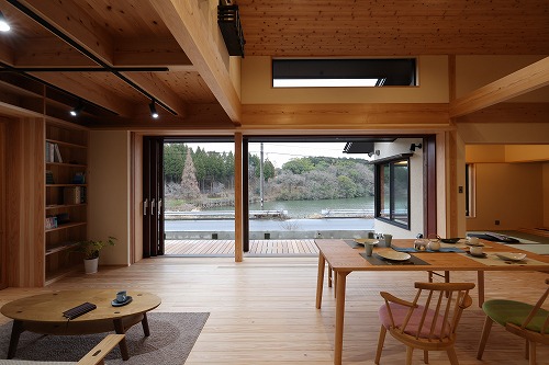 南側のリビングは3枚全開放の木製大窓を設け公園側へ抜けるパノラマビューが楽しめます。