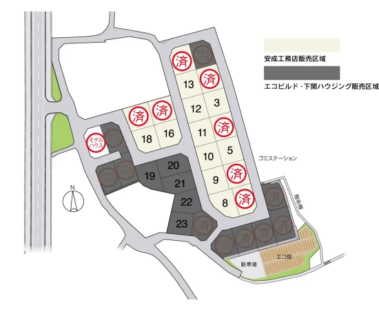 セミオーダープラン可能な区画は3、5、8~13となります。