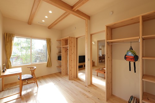 ・ロフト感覚で使える小屋裏のスタディコーナーは、隠れ家のようなわくわく空間。リビングの気配を感じつつ、ごろっと横になれるタタミのゆっくり過ごせる書斎としても活用できます。