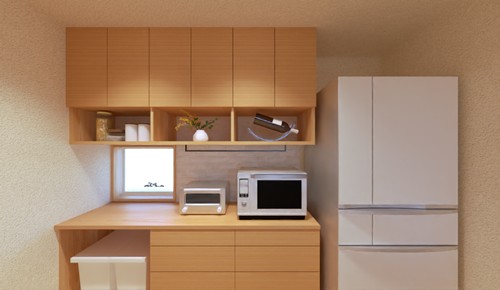 ・シューズクロークから直接キッチンへつながる「お帰り動線」。買い物帰りもスムーズで、日々の暮らしがぐっと心地よくなります。