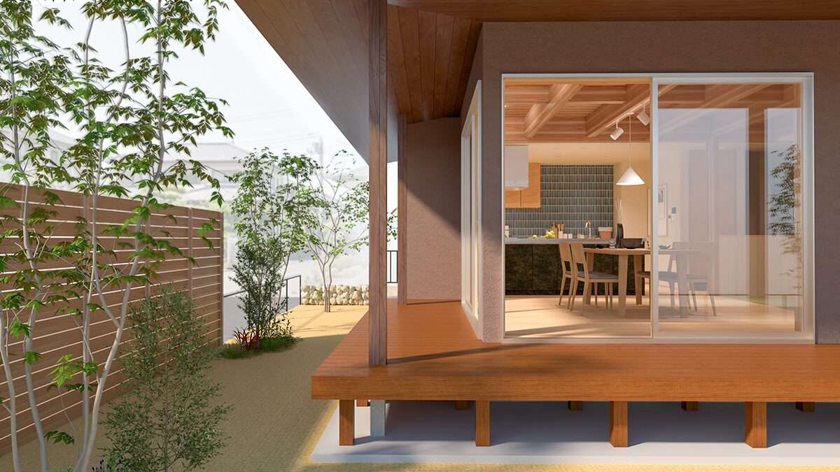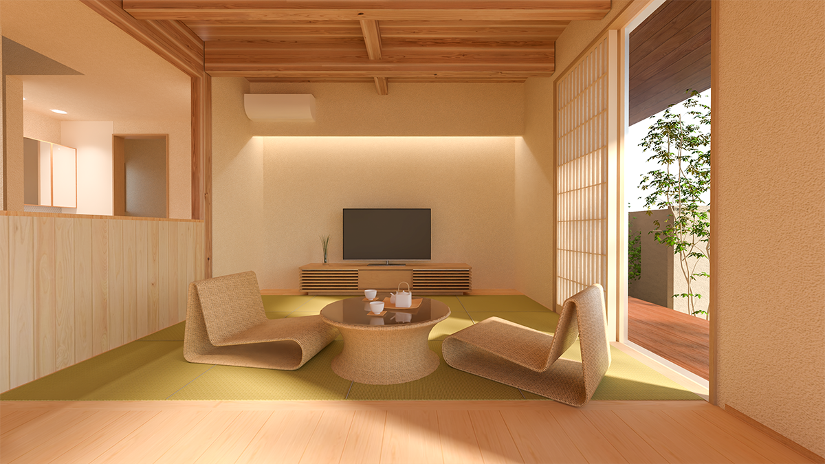 畳リビングでくつろぐ、四季を愉しむ住まい。