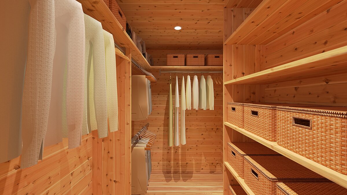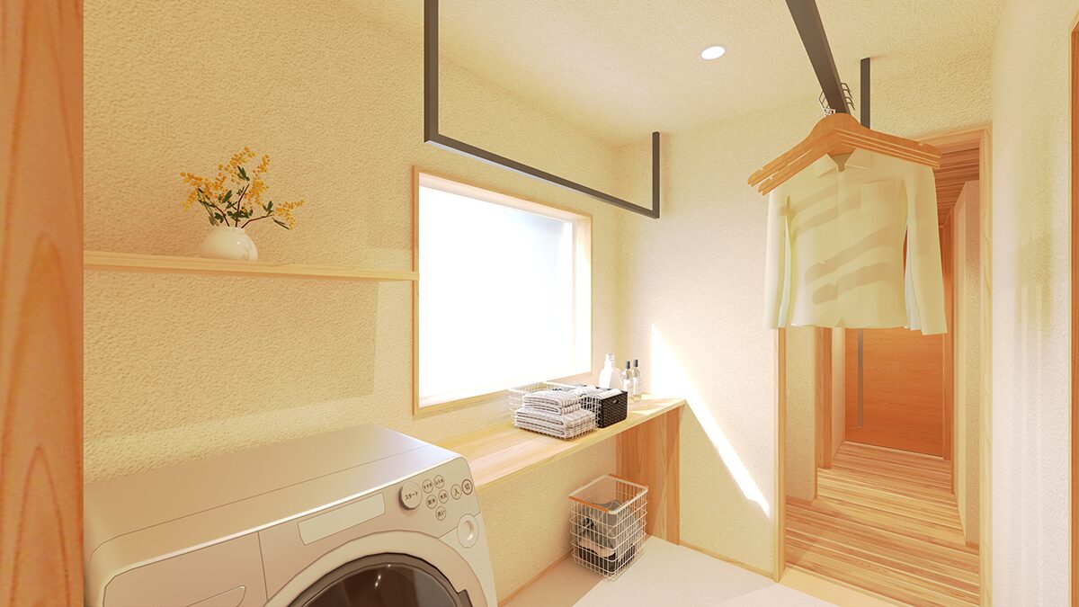 ⑤ 集約した水廻りで家事が最短で行える動線にも注目。