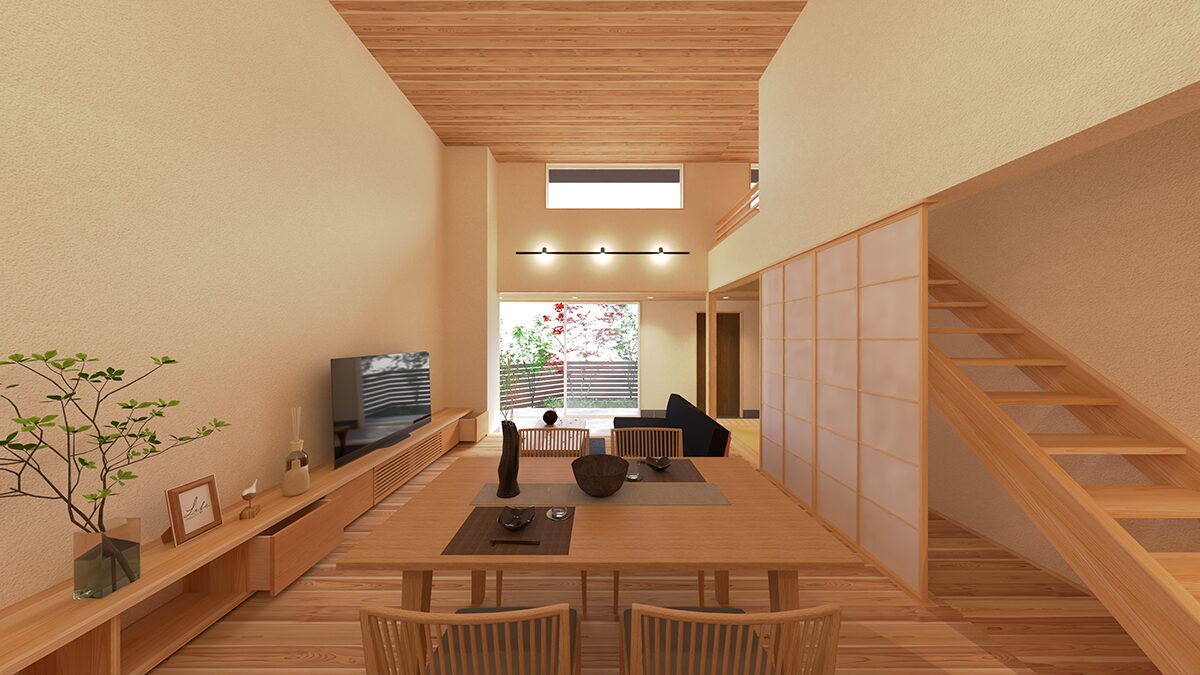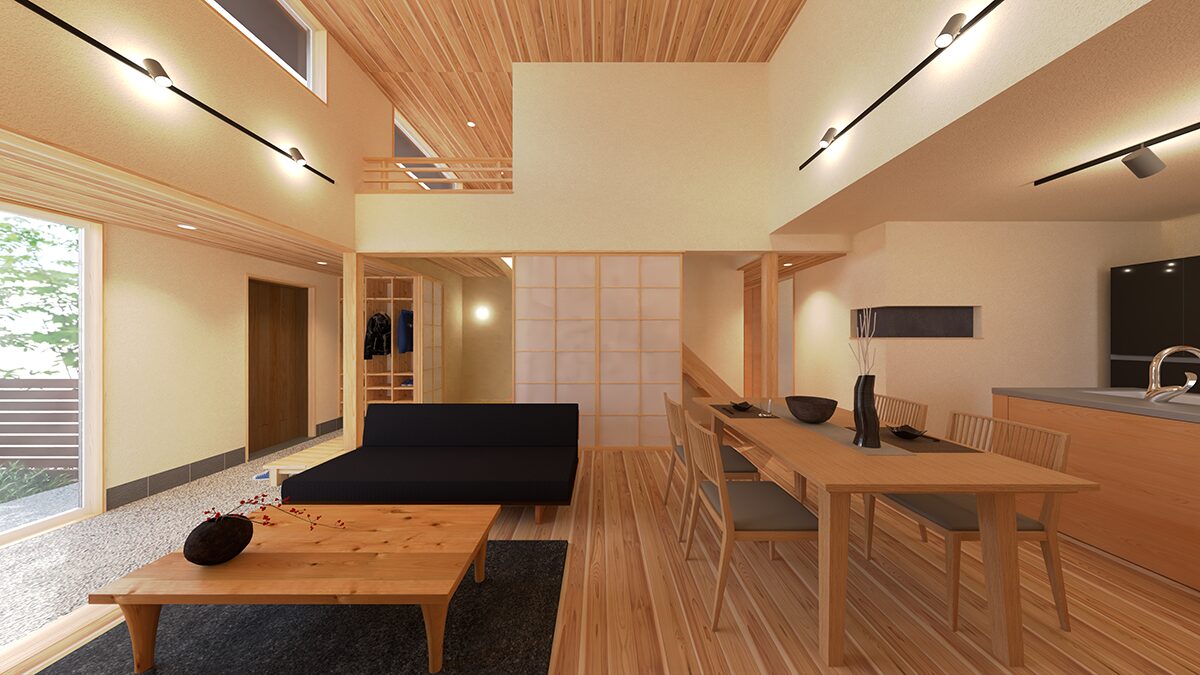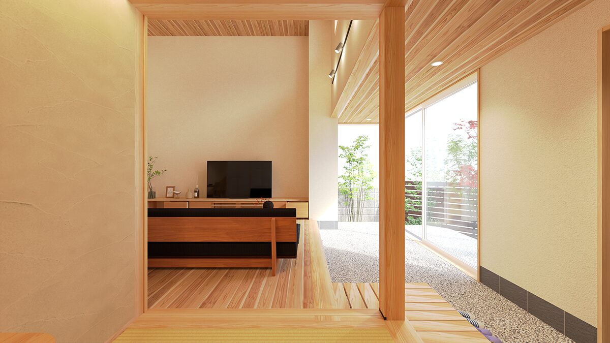 ② 通り土間とリビングが繋がり、広々とした住空間。