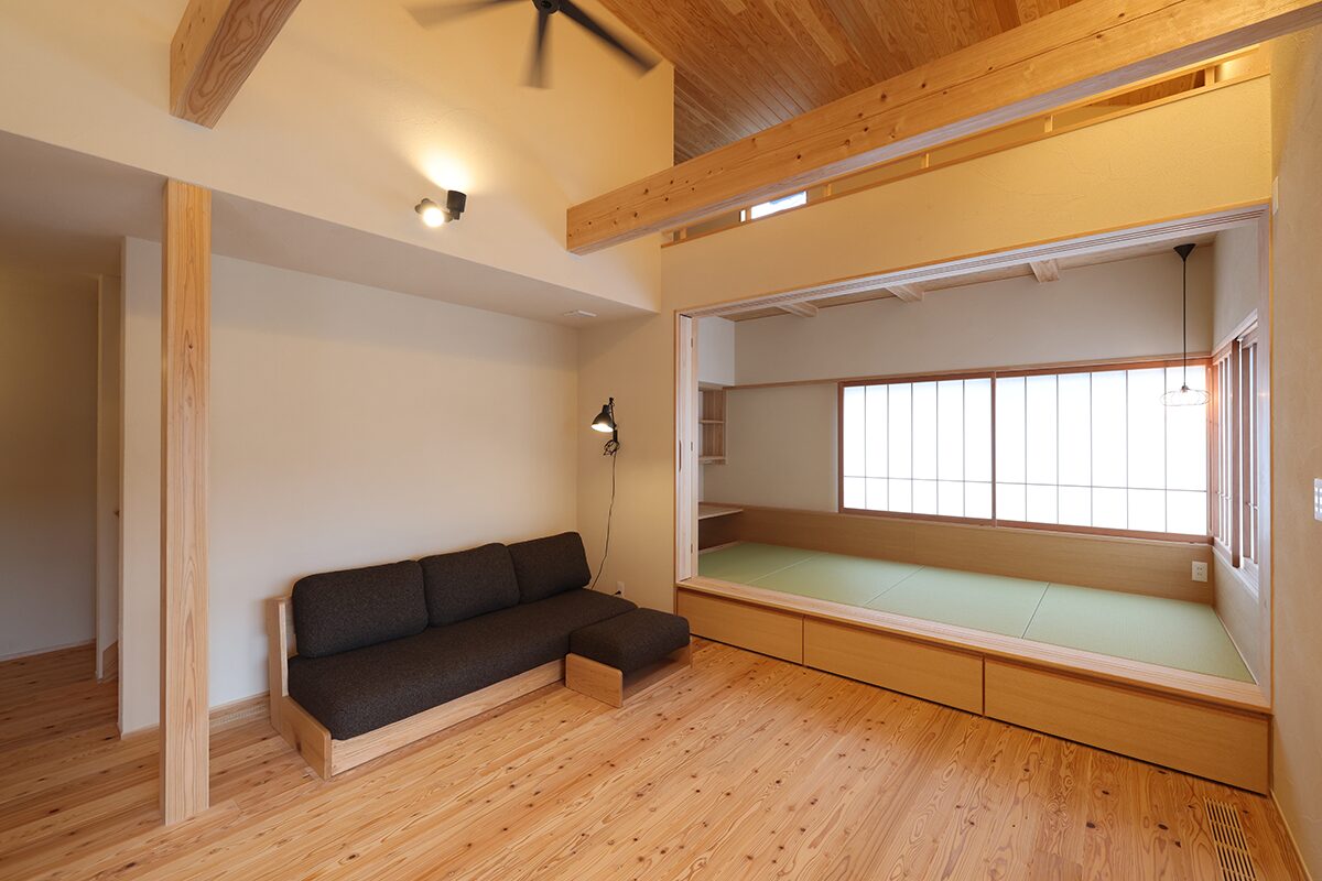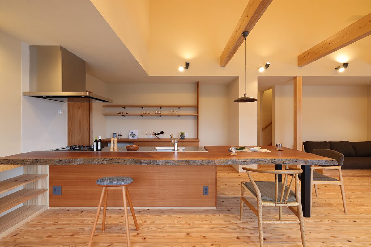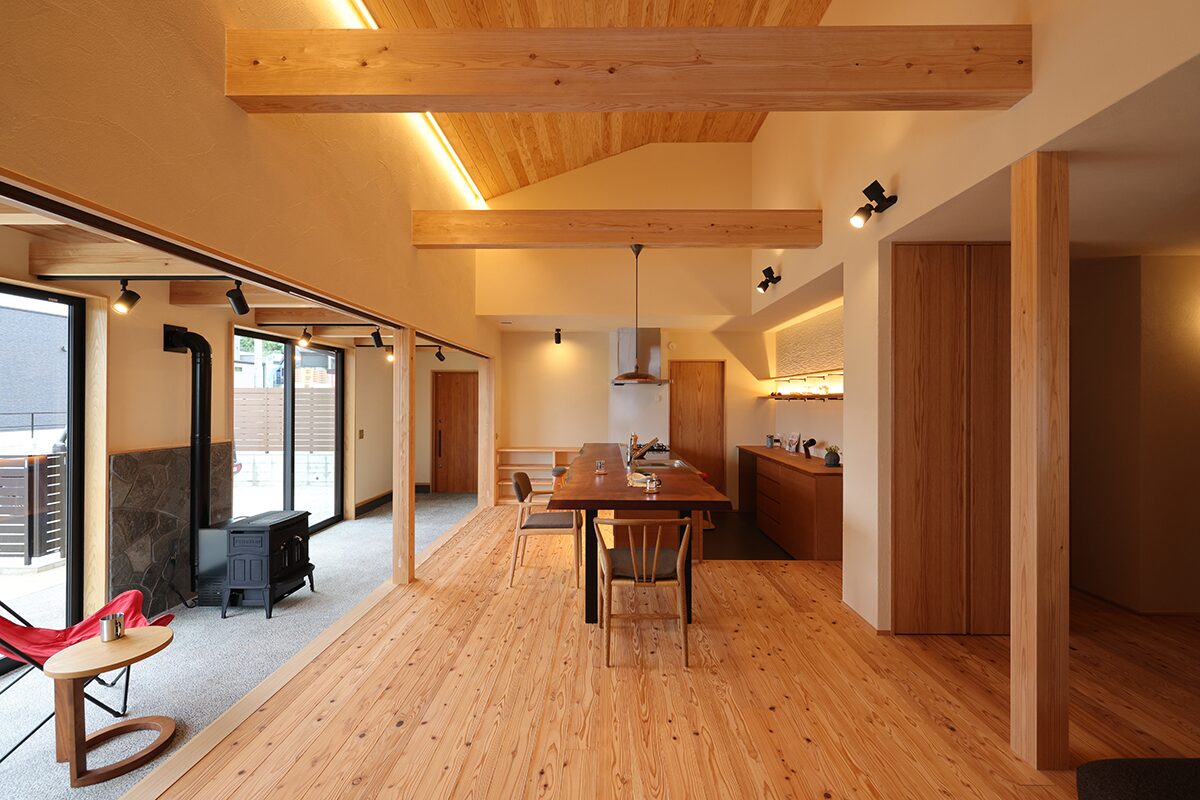火の揺らぎと家キャンプを楽しむ、土間リビングの住まい