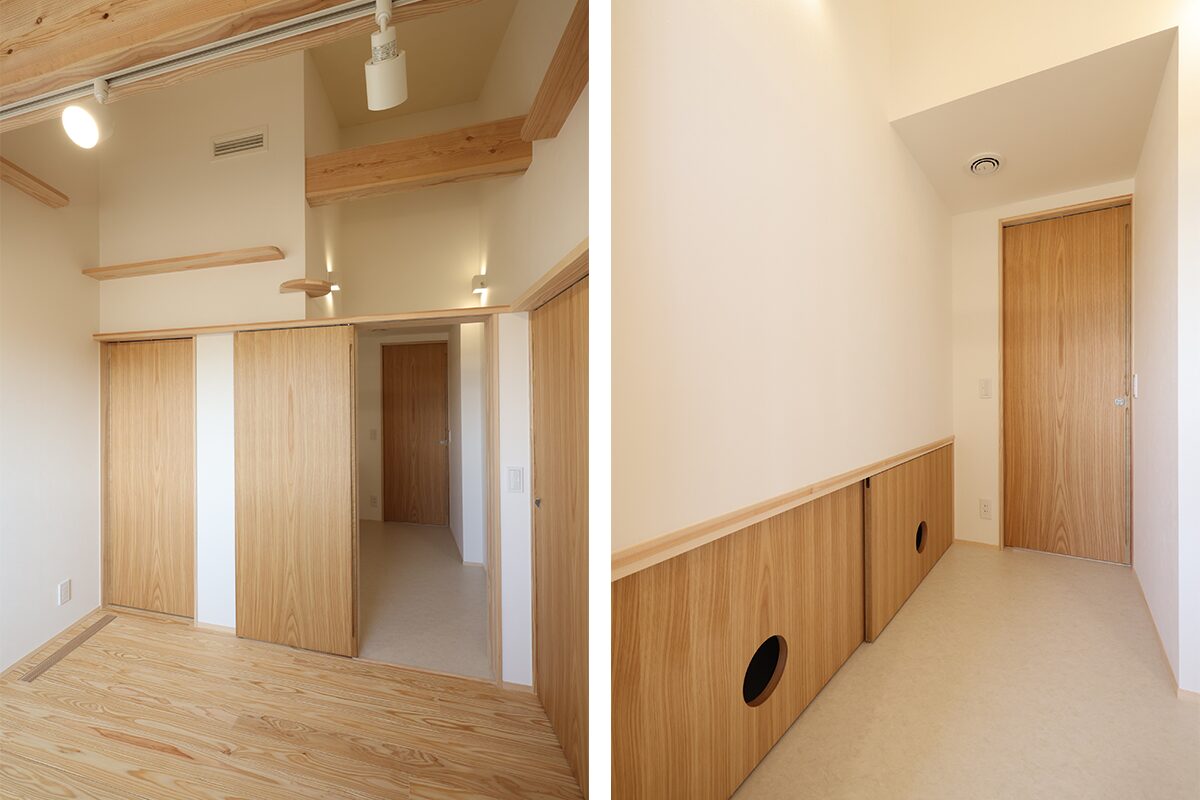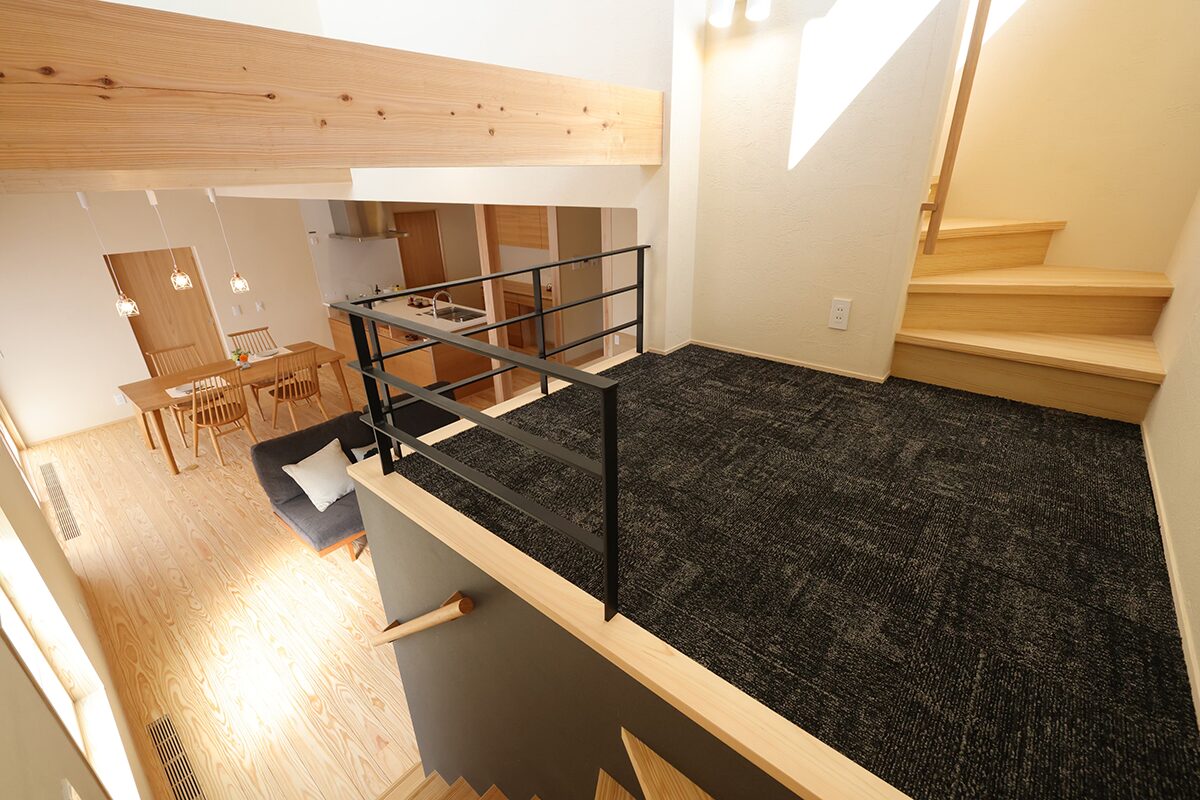 ① 小上がりタタミとスキップフロアを設け、