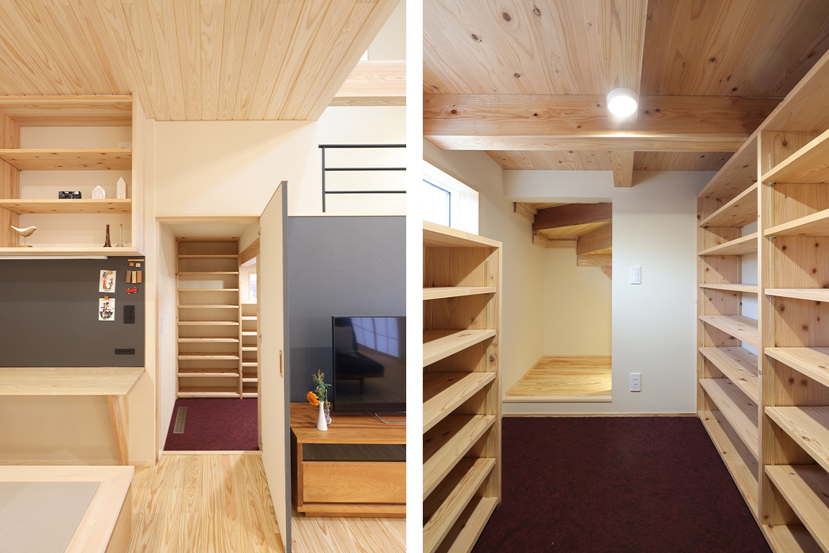 ご主人の趣味室と小屋裏収納。