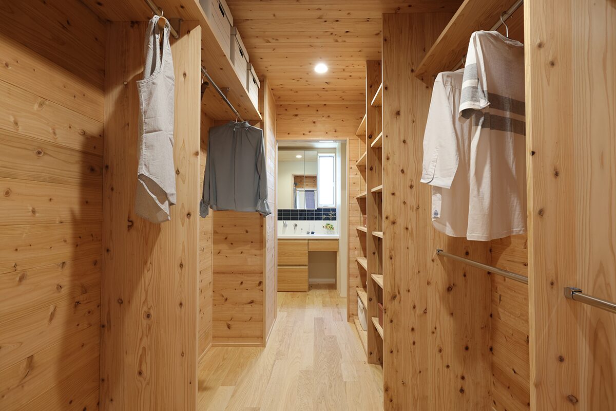 ❸ 通り抜けできるファミリークローゼットは、