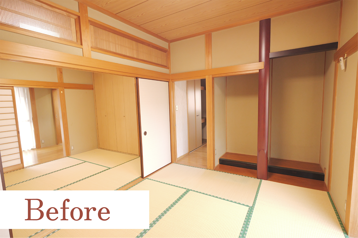 ビニールクロスの壁・フローリングの床だった和風住宅を、無垢の杉と珪藻土で全面リノベーション。