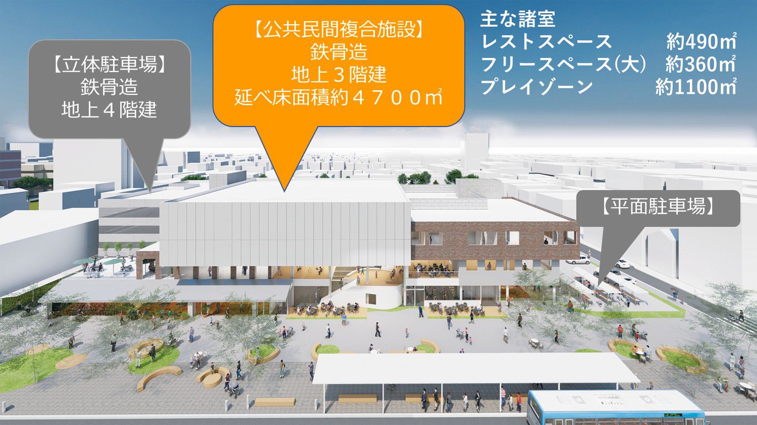 本施設は、公共機能と民間機能を融合させた複合施設として、人々の交流や滞在を生み出し、まちなかに新たなにぎわいを創出することを目的とした拠点で、2027年6月頃全面開業予定となっております。