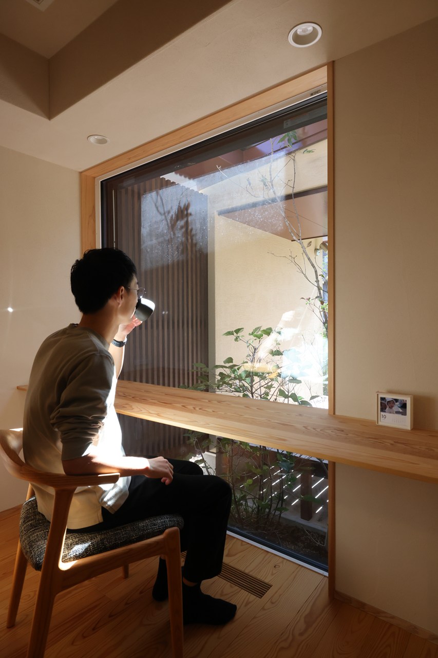 また、学習スペースは大きな窓から坪庭が見えるというのが良くて、子供がいつかここでお勉強している様子をキッチンから見るのが楽しみです。