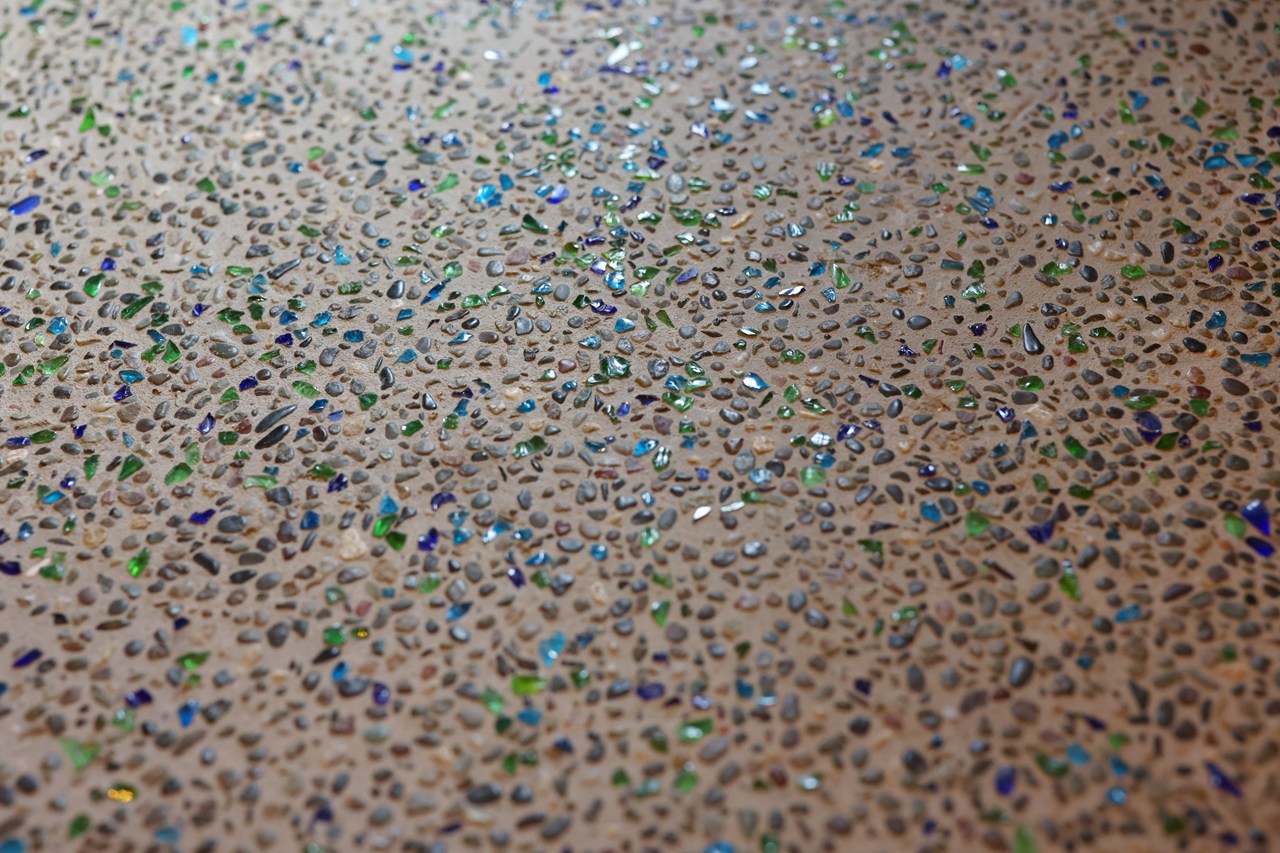 ご主人 畳は琉球畳を使用しています。玄関土間には琉球ガラスも混ぜているんですよ。