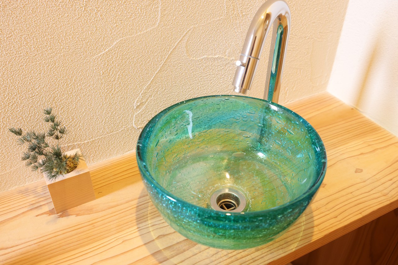 私は琉球ガラスが好きなのでトイレの手洗い鉢も琉球ガラスにしています。