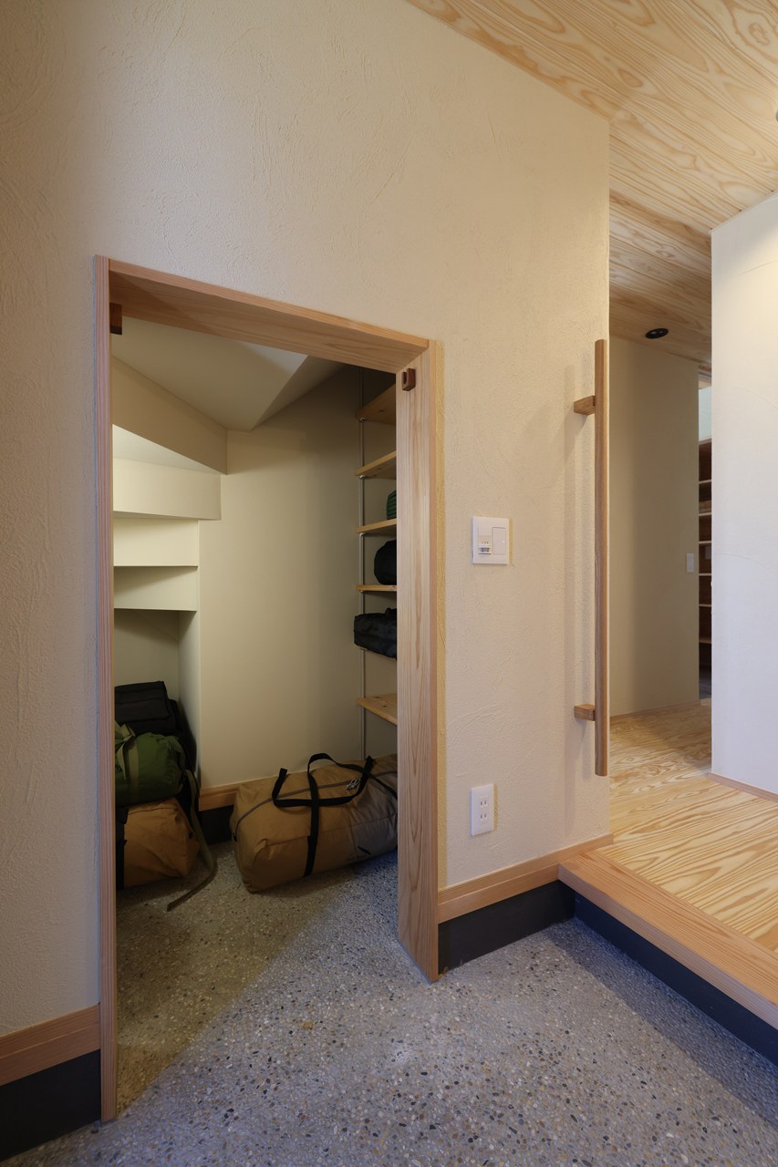 大きなキャリーバッグや外で使うものなど靴を履いたままサッと仕舞えて便利です。